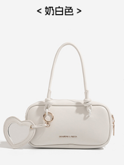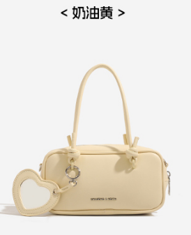 保龄球包斜跨包女包2025夏新款奶油色柔软手提波士顿包百搭小方包