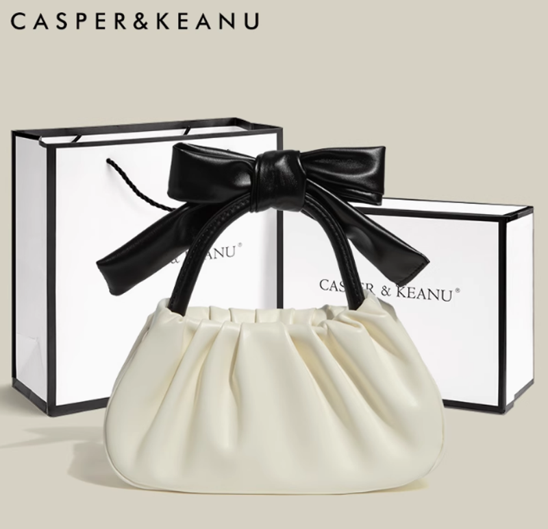 CASPER&KEANU小众法式女生云朵包2025新款高级感蝴蝶结褶皱手提包