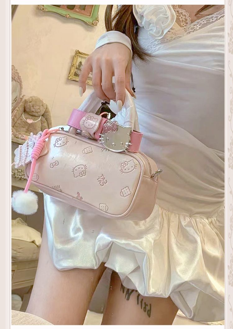 pinkyo可爱凯蒂猫印花小方包单肩斜跨波士顿手提包日常通勤枕头包